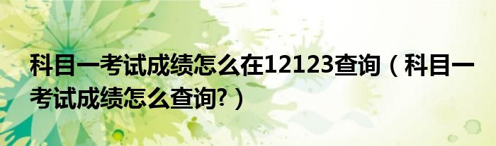 导读大家好,小美来为大家解答以上问题。科目一考试成绩怎么在12123查询,科目一考试成绩怎么查询?很多人还不知道,现在让我们一起来看看吧!1...