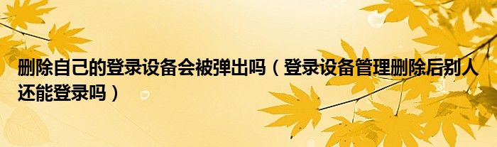 导读大家好,皮皮为你解答以上问题。删除自己的登录设备会被弹出吗,登录设备管理删除后别人还能登录吗这个问题很多人还不知道,现在让我们一起