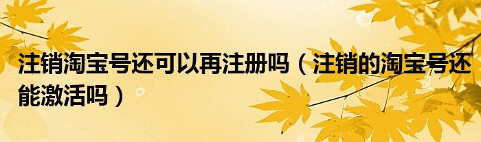 导读大家好,皮皮为你解答以上问题。注销淘宝号还可以再注册吗,注销的淘宝号还能激活吗这个问题很多人还不知道,现在让我们一起来看看吧!解
