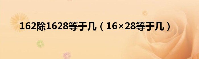 大家好,张宇为你解答以上问题。162除1628等于几,16×28等于几这个很多人还不知道,现在让我们一起来看看吧!
