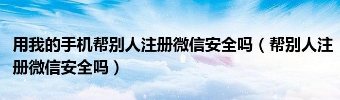导读大家好,皮皮为你解答以上问题。用我的手机帮别人注册微信安全吗,帮别人注册微信安全吗这个问题很多人还不知道,现在让我们一起来看看吧!