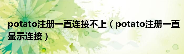 导读大家好,皮皮为你解答以上问题。potato注册一直连接不上,potato注册一直显示连接这个问题很多人还不知道,现在让我们一起来看看吧!解答