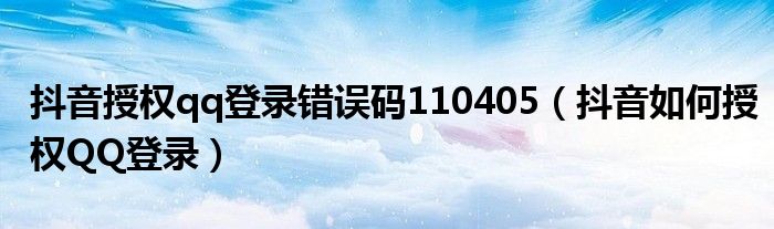 导读大家好,皮皮为你解答以上问题。抖音授权qq登录错误码110405,抖音如何授权QQ登录这个问题很多人还不知道,现在让我们一起来看看吧!解答