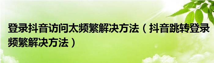导读大家好,皮皮为你解答以上问题。登录抖音访问太频繁解决方法,抖音跳转登录频繁解决方法这个问题很多人还不知道,现在让我们一起来看看吧!